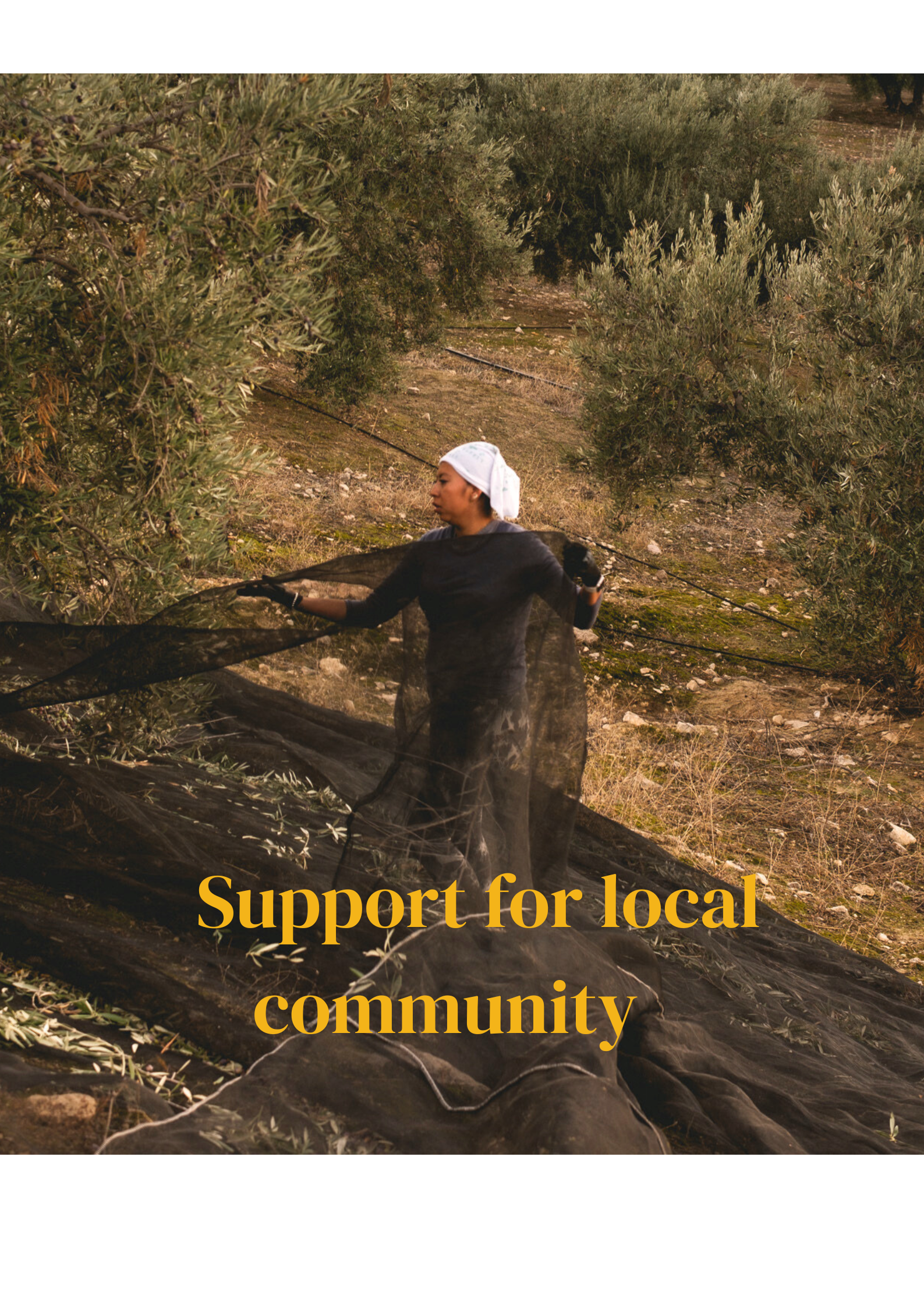 Nuo pat Holy Olive gimimo vienas mūsų pagrindinių prioritetų – tai tikras ryšys su kraštu, jo žmonėmis ir tradicijomis. Mūsų aliejus kuria ne dideli fabrikai, o šeimos ir jų maži ūkiai, vietinių žmonių darbščios rankos, jų istorijos ir gyvenimai, kurie ir yra svarbiausia viso to dalis. Kiekviename ūkyje, kurį atstovaujame, lankėmės asmeniškai ir akis į akį susipažinome su gamintojais, matėme jų kasdienybę ir gamybos procesus.